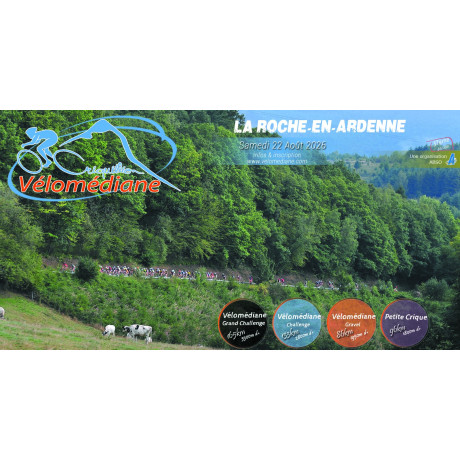 The Vélomédiane (22/08/2026) is a cycling event open to all cyclists aged over 18. It is historically and now posthumously curated by Claude Criquélion, is supported by the city of La Roche-en-Ardenne, FCWB Fédération Cycliste Wallonie Bruxelles and the UCI (Union Cycliste Internationale), and runs across the beautiful scenery of the Ourthe region in the Belgian Ardennes.